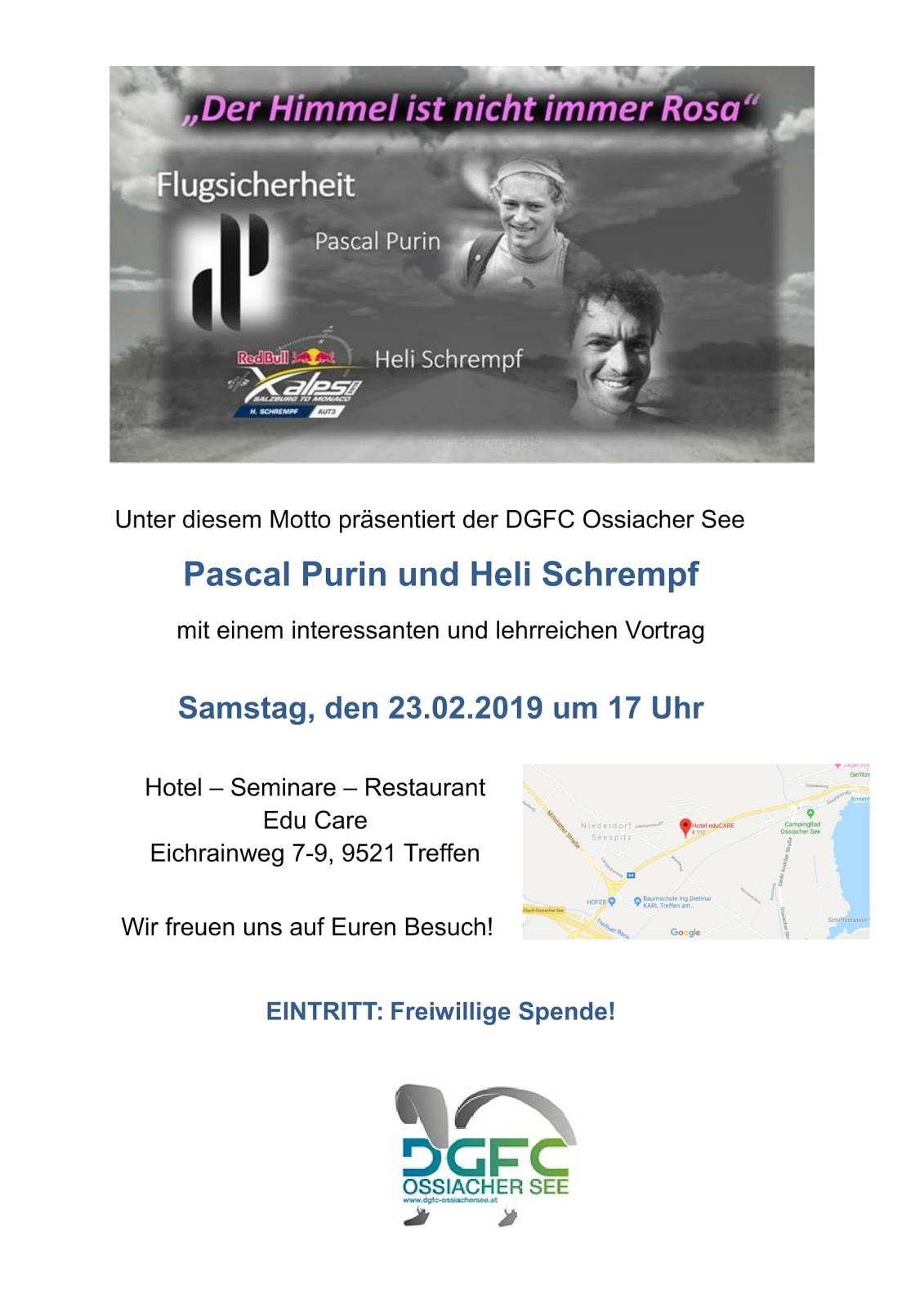 « Alle Veranstaltungen Diese Veranstaltung hat bereits stattgefunden. Flugsicherheit – „Der Himmel ist nicht immer rosa“ 23. Februar 2019 @ 16:00 - 21:00 « Gleitwinkelfliegen St. Peter am Kammersberg – verschoben auf Retterwerfen – Retterpacken » Zum Kalender hinzufügen Google Kalender iCalendar Outlook 365 Outlook Live Details Datum: 23. Februar 2019 Zeit: 16:00 - 21:00 Veranstalter DGFC Ossiachersee Veranstaltungsort Edu Care – Seminarzentrum Eichrainweg 7-9 Treffen am Ossiachersee, Kärnten 9521 Österreich Google Karte anzeigen Veranstaltungsort-Website anzeigen